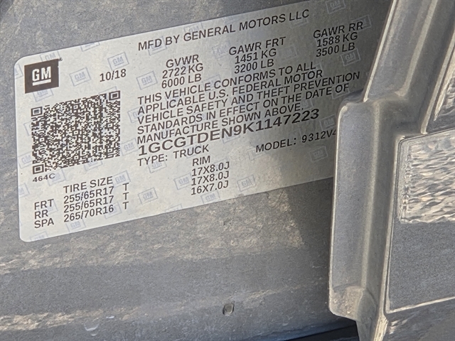 | VIN | 1GCGTDEN9K1147223 |