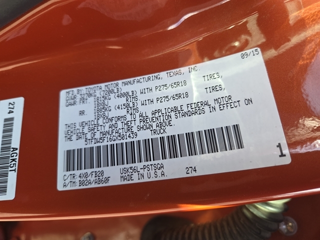 | VIN | 5TFDW5F16GX501439 |