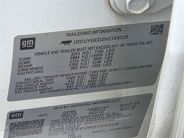 | VIN | 1GCUYEED2NZ165019 |