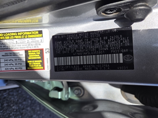 | VIN | 4T1K61AK5LU355901 |