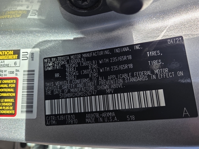 | VIN | 5TDHBRCH0MS526747 |
