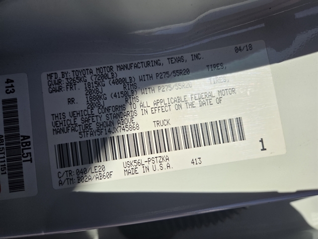 VIN 5TFAY5F14JX745868
